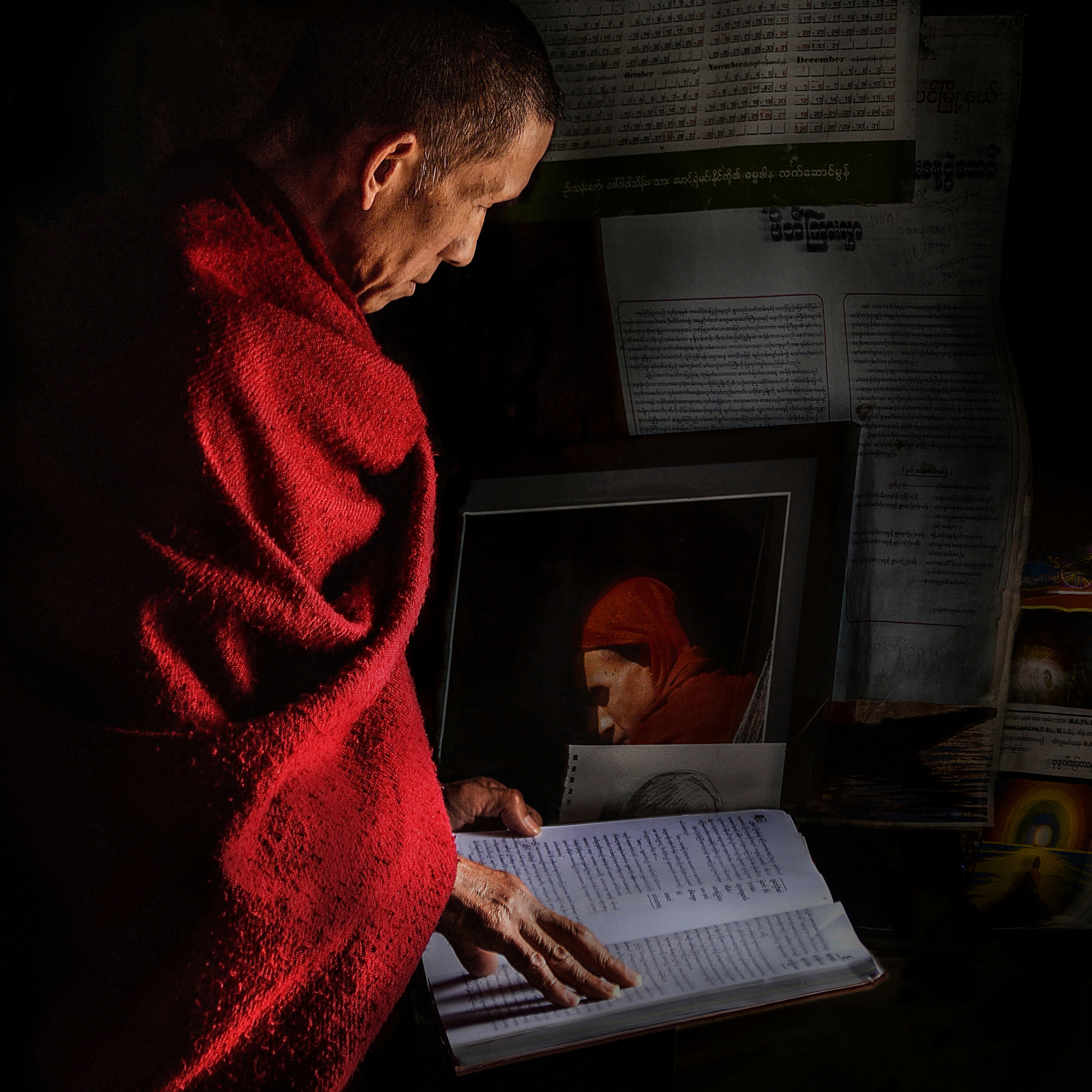'Burmese monk in prayer' Myanmar – (Burna)