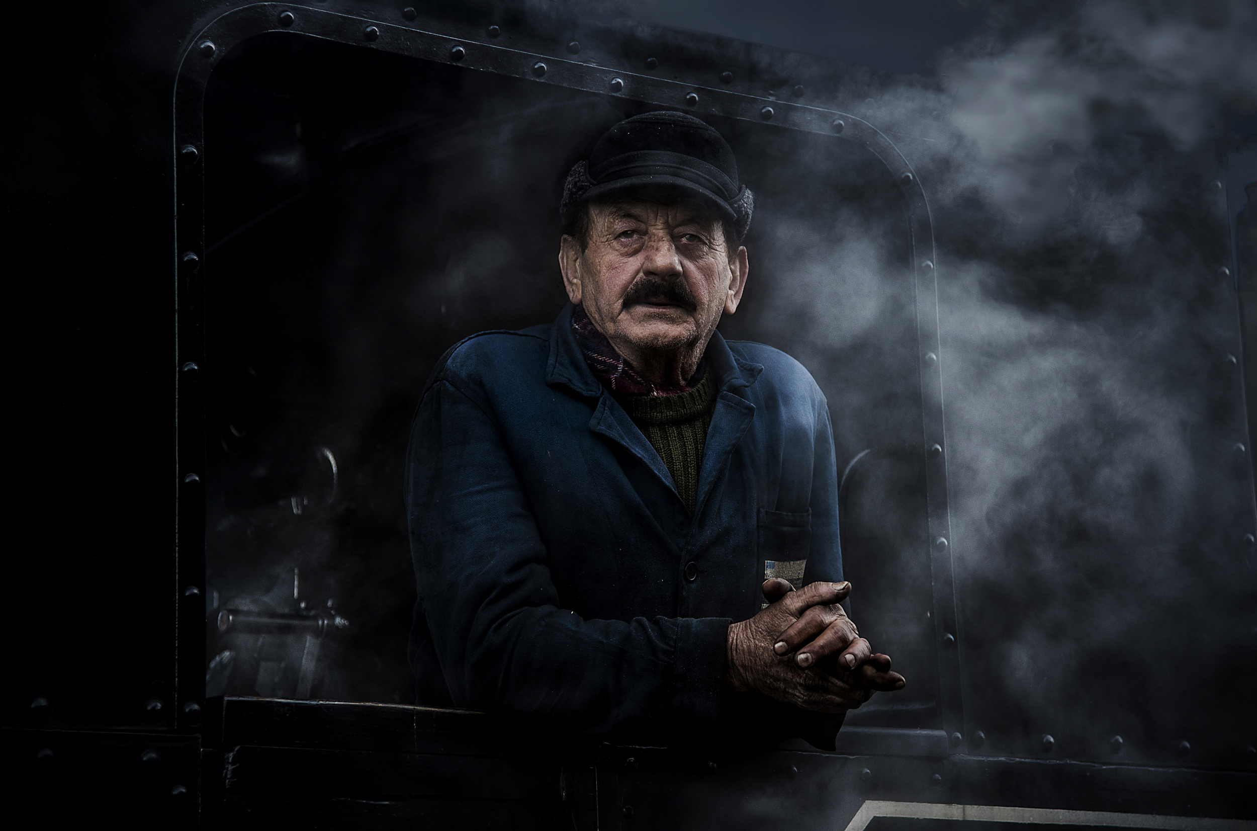 The last remaining forest steam train in Europe. A moment of relaxation for the driver, before leaving for the mountain for the supply of timber.