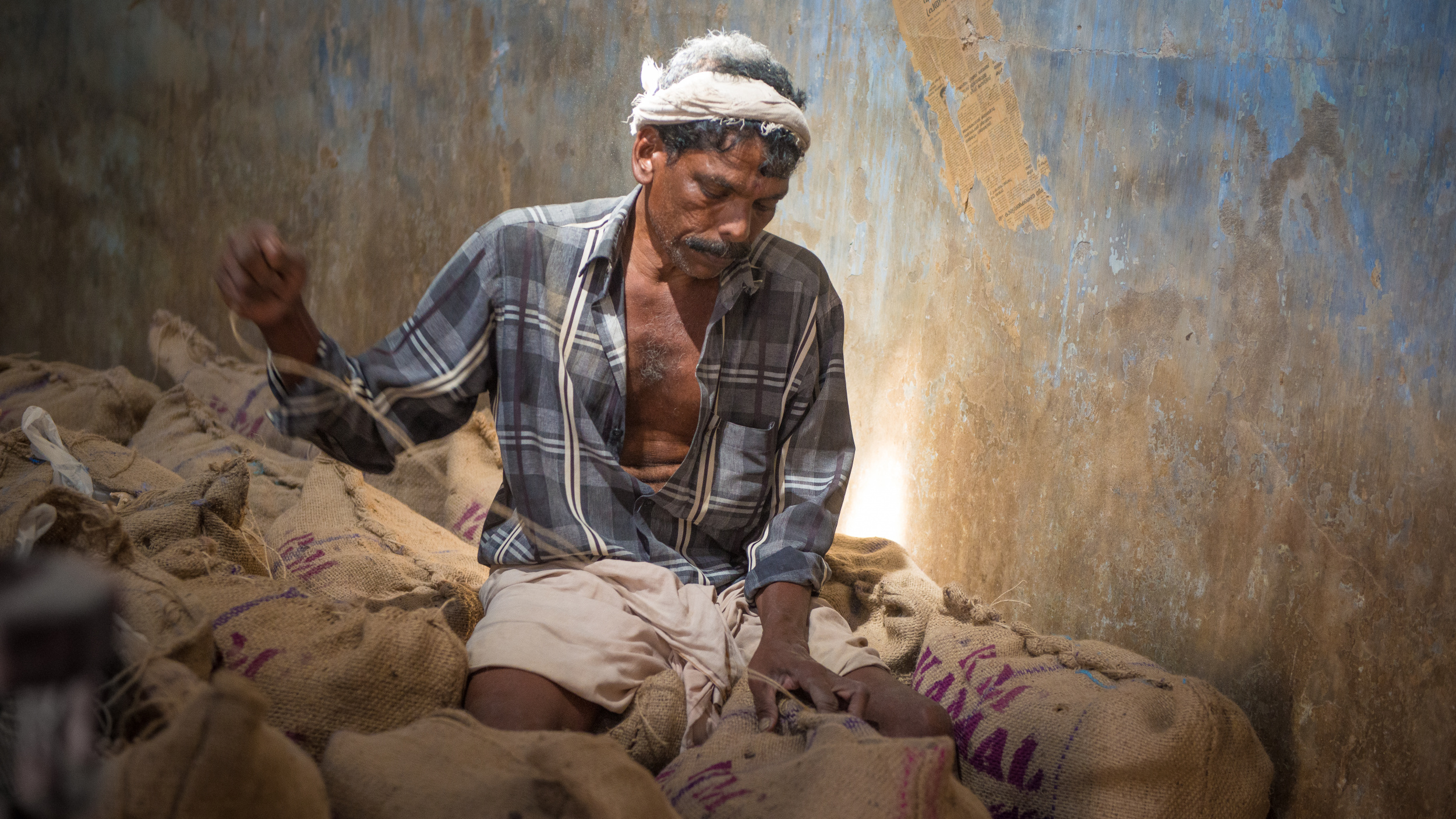 The smell was unbearable and you couldn't see your hand in front of your face because of the dust. So after half a minute I wanted to walk out until I suddenly noticed a man in a corner at the back of the shed, beautifully lit by a hole in the roof. The wall behind him was in such beautiful harmony that I immediately knew this was going to be a good photo, and so it was.