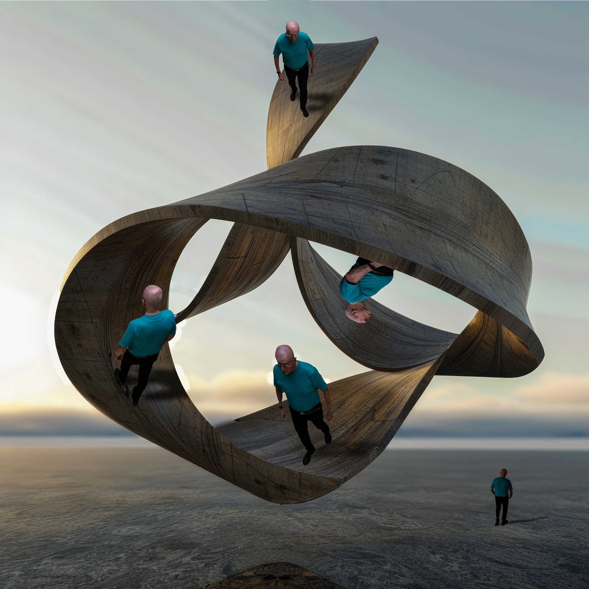 For example, Möbius's Strip demonstrates the use of several vantage points in one image. When an even more unconventional angle is needed, one that defies traditional setups, I occasionally employ my DJI Mavic Air 2 drone to capture the shot.