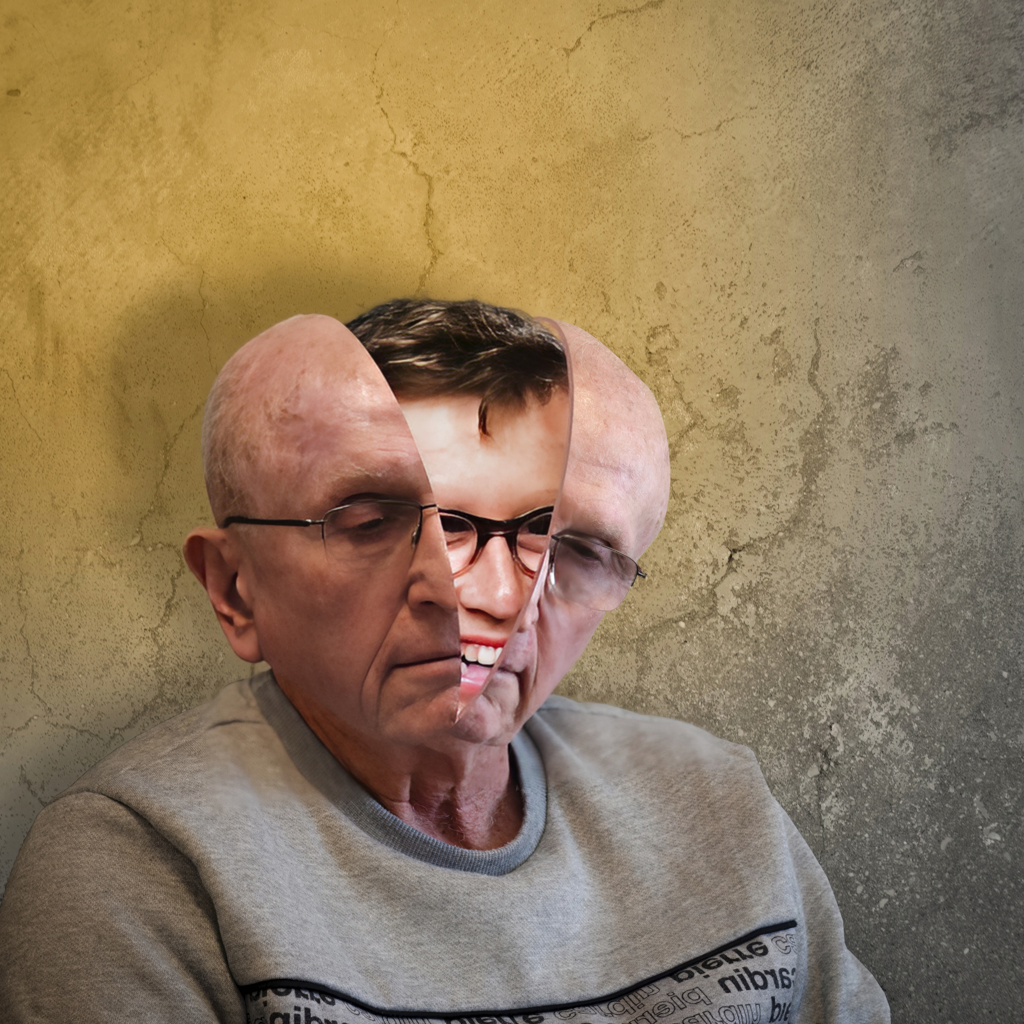 In the composition, I appear—as always—as the protagonist. My head is split open like a watermelon, revealing the face of my 13-year-old self beneath a grim, expressionless adult facade. This juxtaposition serves as both a commentary on the passage of time and a reminder that the inner child remains alive within me. On a personal note, some of the happiest moments of my life are spent with my grandchildren. Our shared curiosity and creative joy—exploring Photoshop and AI applications together—embody the timeless essence of The Inner Child.